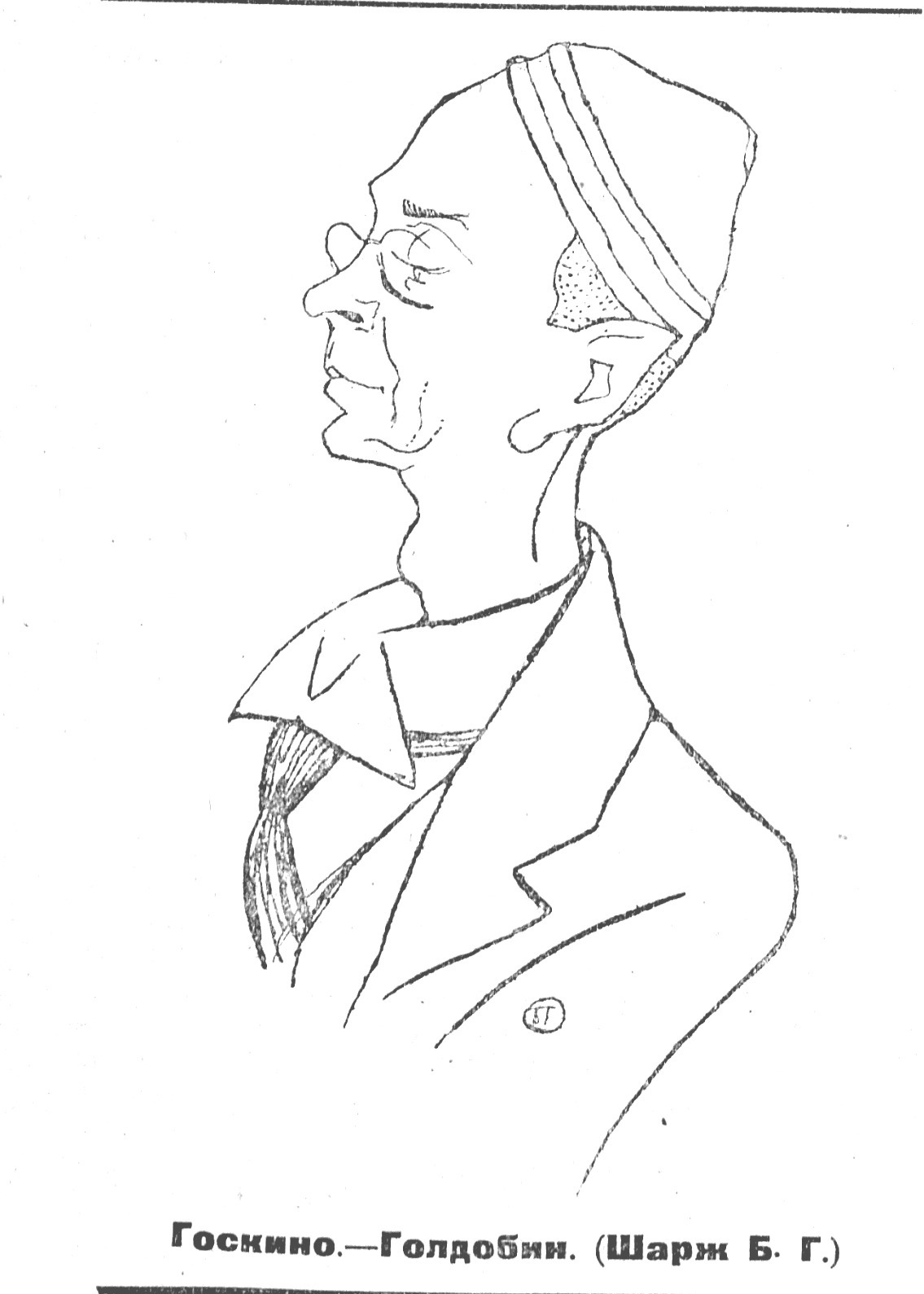 Рис. 4. Б. Г. Голдобин (шарж). Новый зритель, 1924, № 29, с. 6.