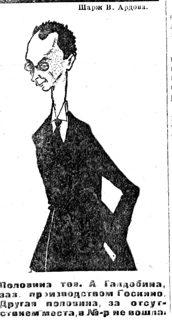 Рис. 5. В. Ардов. А. В. Голдобин (шарж). Кино-газета, 1924, 29 января, № 4–5, с. 2.