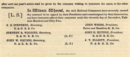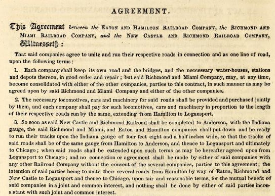 Рис. 1. Фрагмент договора между железнодорожными компаниями Eaton and Hamilton Railroad Company, Richmond and Miami Railroad Company и New Castle and Richmond Railroad Company