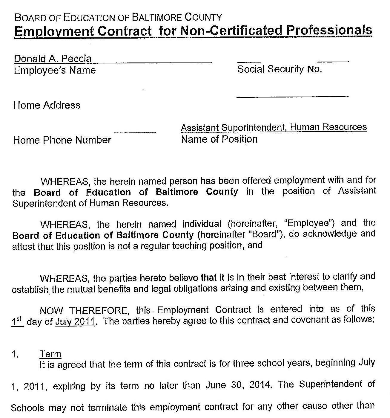 - Donald Peccia contract signed by Joe Hairston by The Baltimore County school system. Available from: https://archive.org/details/399602-donald-peccia-contract/page/n1/mode/2up. (accessed 20 September 2025).